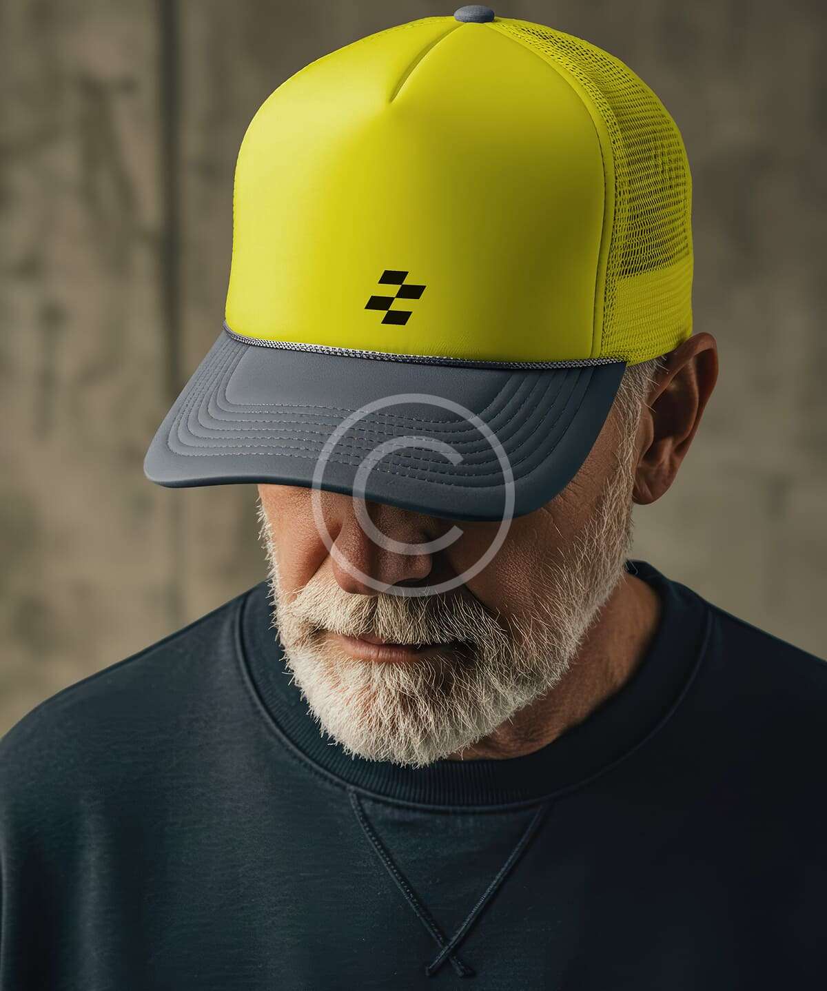 A yellow and black two-tone cap with racing emblem—designed for sunny track days or casual sporty looks.
